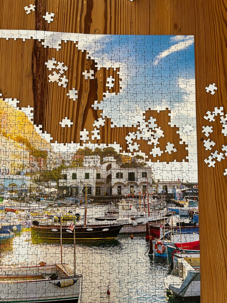 Nuestra segunda actividad, y no soy fan pero funcionó hermosamente, son los rompecabezas. Parece una pavada, pero nos reúne alrededor de la mesa, nos reímos, esperamos ese momento como algo para cerrar el día. Les digo que a veces no pongo ni una pieza, pero me emociona ver a los demás separar, clasificar, competir por quién resolvió más... lo recomiendo.