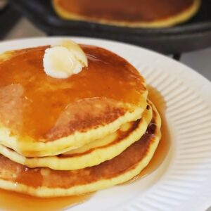 * Una plancha de dos hornallas es ideal para acelerar los tiempos. Pueden usar las dos mitades para cocinar o pueden cocinar en una y mantener tibios los pancakes en la otra.