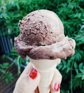 En Instagram escribí que le daba un 8 en textura, y les digo por qué. A mí me gusta el helado ultra extra super cremoso. Me gusta que se empiece a derretir ni bien lo sirvo y que el resto que que queda en la compotera parezca una crema y no agua. Esta versión queda un poco menos cremosa de lo que a mí me gusta, pero a la vez es muy buena para servir. Quedan bochas perfectas, nunca endurece al punto de no poder servirlo y no es pesado para nada.