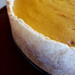 8. Estirar la masa y forrar un molde de entre 22 y 28 cm. Reservar en la heladera mientras terminan el relleno.