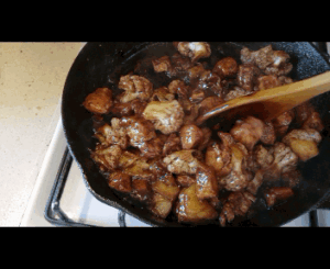 3. Dorar los cubos de pollo a temperatura máxima y luego bajar el fuego a medio.