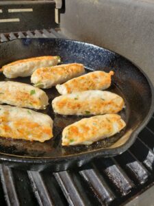 Les digo más. El universo ya estaba conspirando, porque me levanté pensando en salchichas doradas a la parrilla; tratando de ver cómo sumar corcantez y doradismo al exterior, más algo de perfume ahumado y, ¡bum! Una amiga ordena la alacena y encuentra un frasco de grasa de cerdo importada y me la regala. ¡Antes de que yo dijera nada de mis antojo salchichesco!