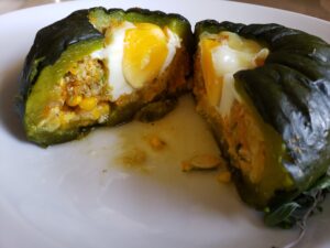 7. Distribuir el relleno presionando con cuidado y dejando un hueco para agregar el huevo.