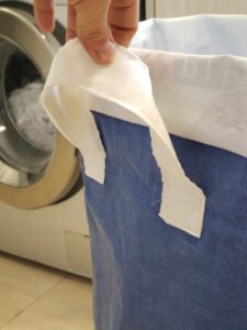 2. Limpien muy bien la bolsa con una esponja, agua y jabón. Pueden pasar una rejilla con vinagre al final para sacar todo resto de grasitud y olor.